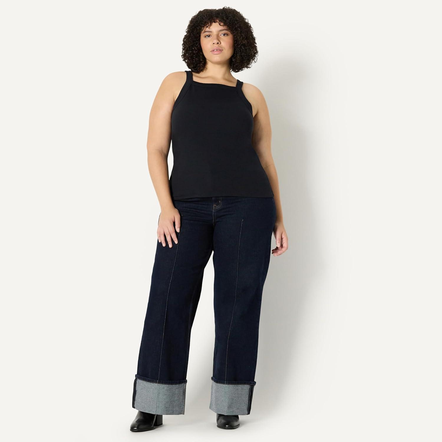 Amazon Essentials Women’s Slim-Fit Stretch Rib High-Neck Tank(Black)