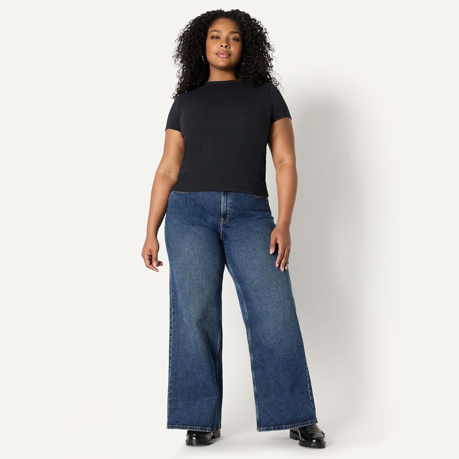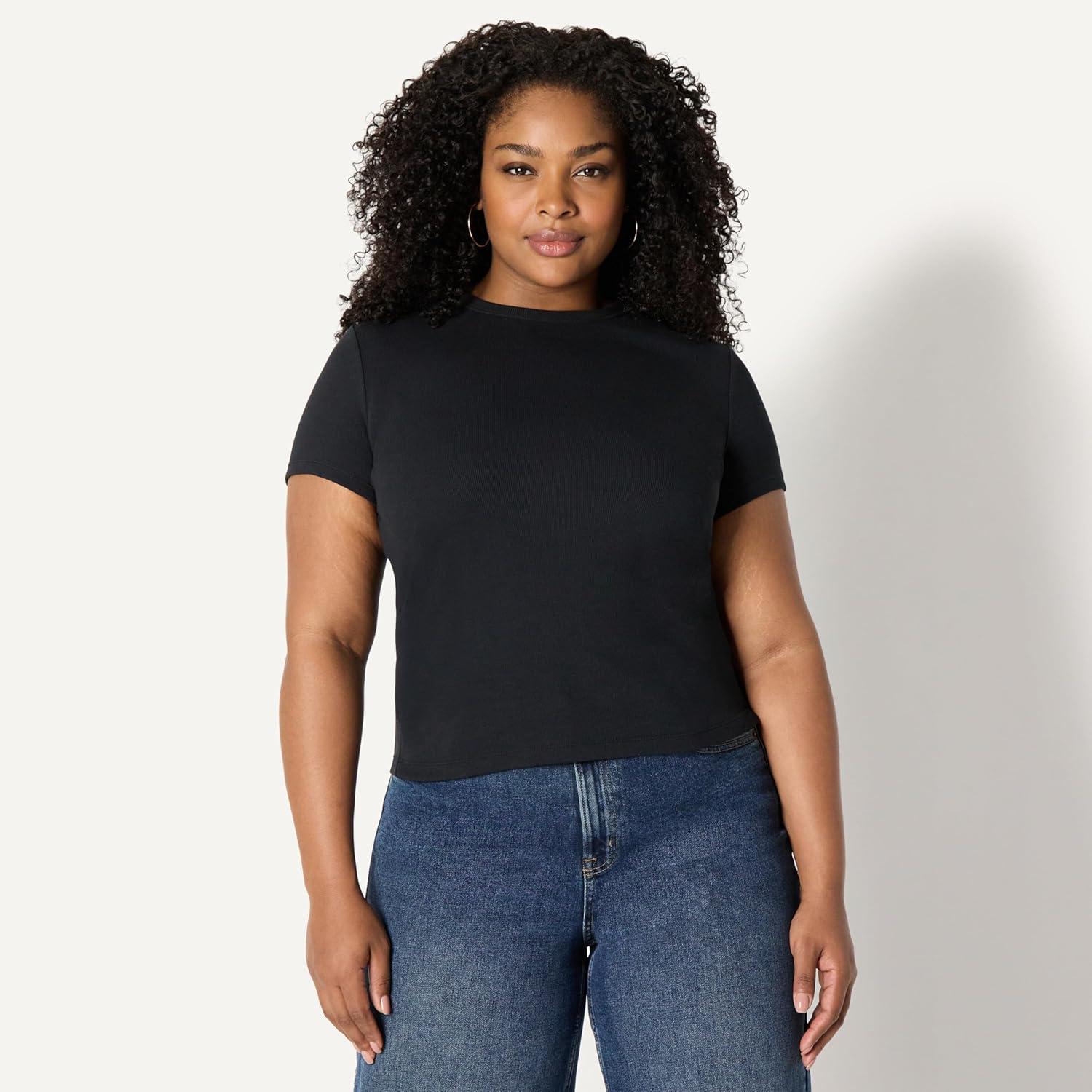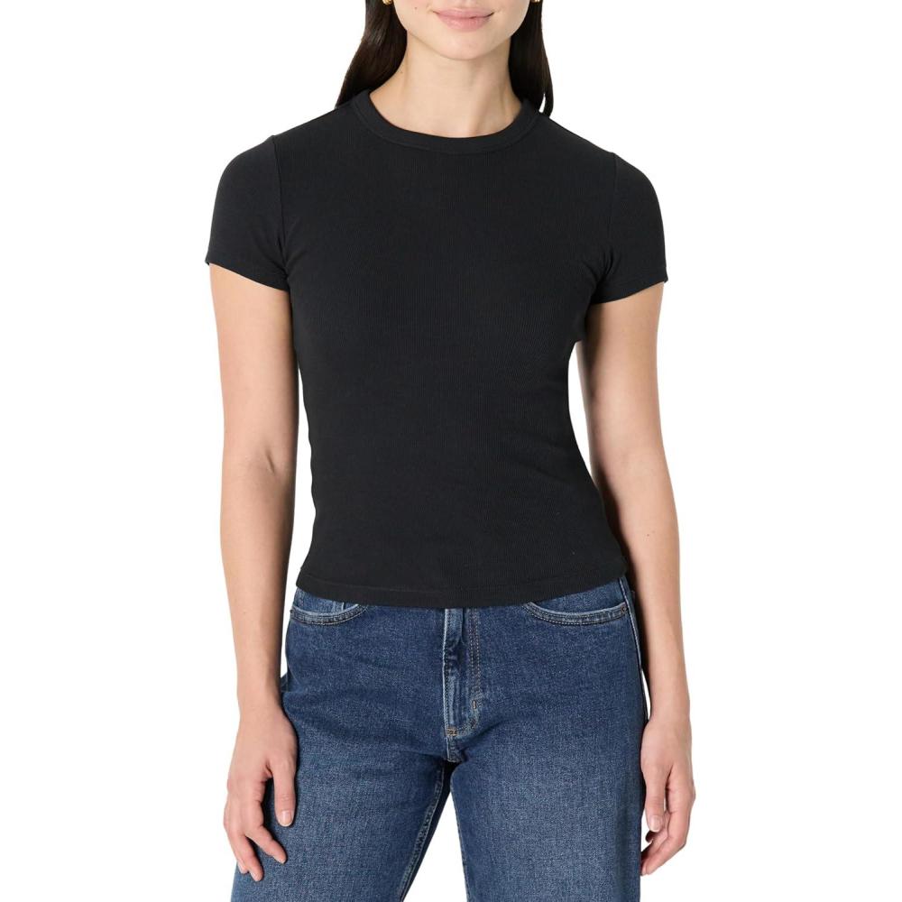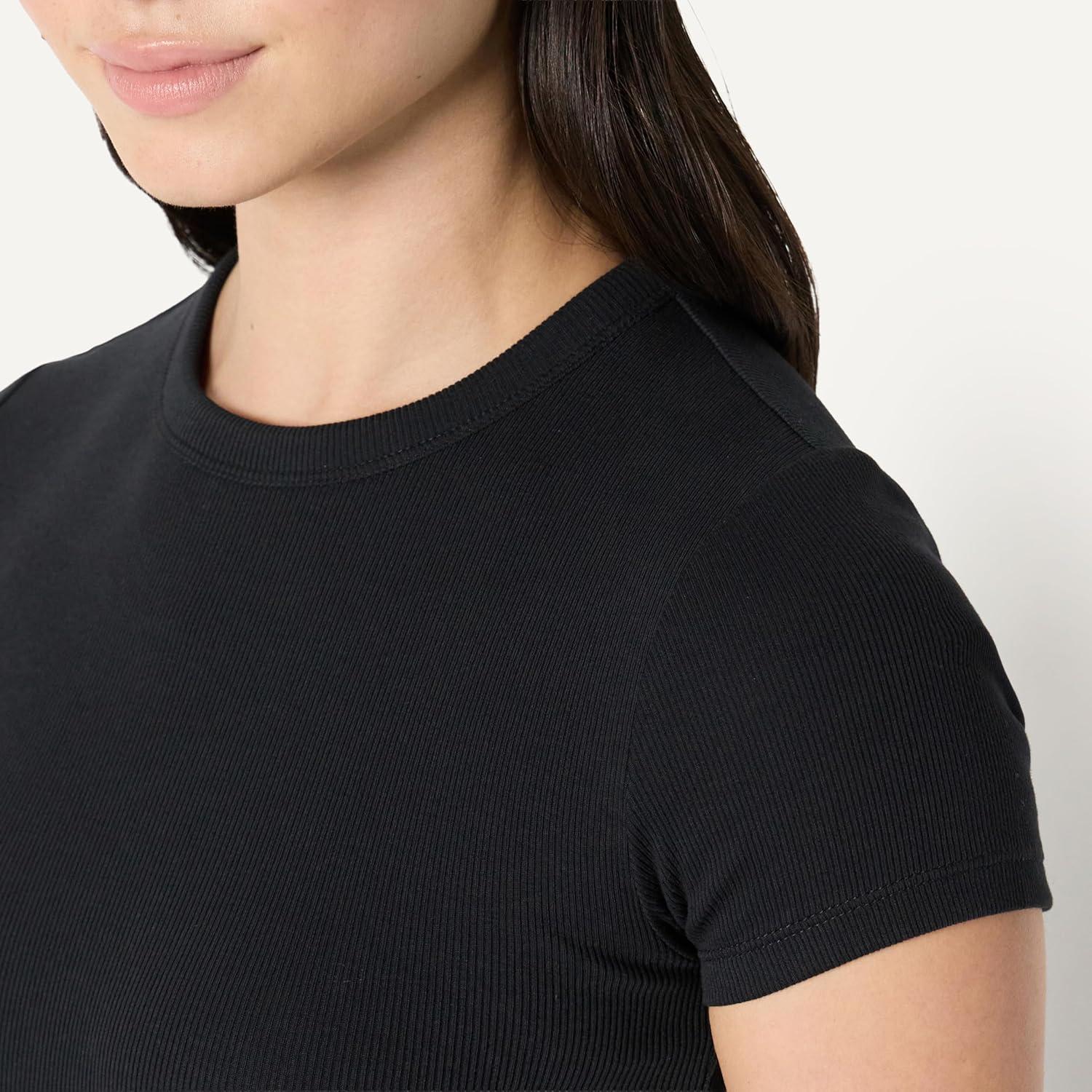 Amazon Essentials Women’s Slim-Fit Stretch Rib Short-Sleeve Tee(Black)