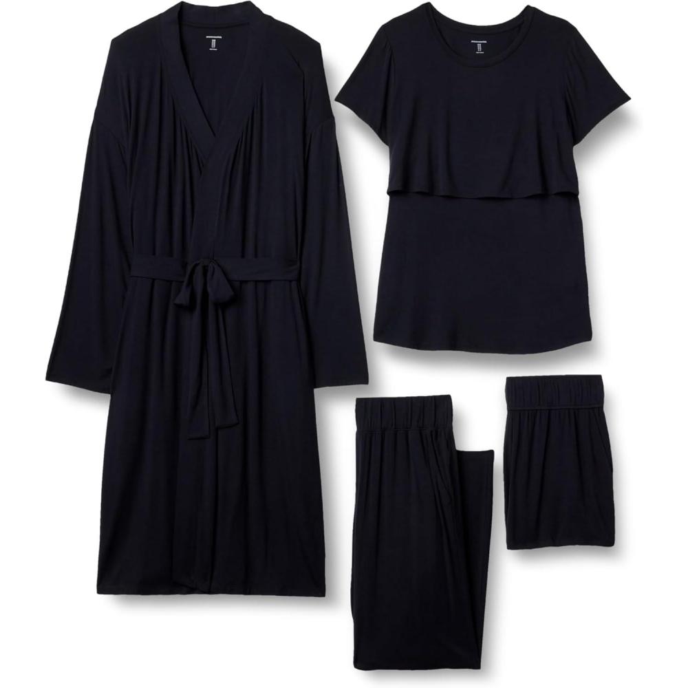 Amazon Essentials Women’s Soft Modal Nursing Maternity Sleepwear Pajama Bundle, 4 Piece(Black)