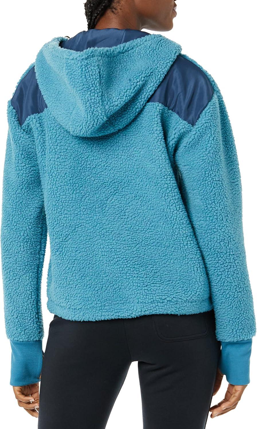 Amazon Essentials Women’s Teddy Fleece Quarter Button Hooded Jacket(Teal Blue)