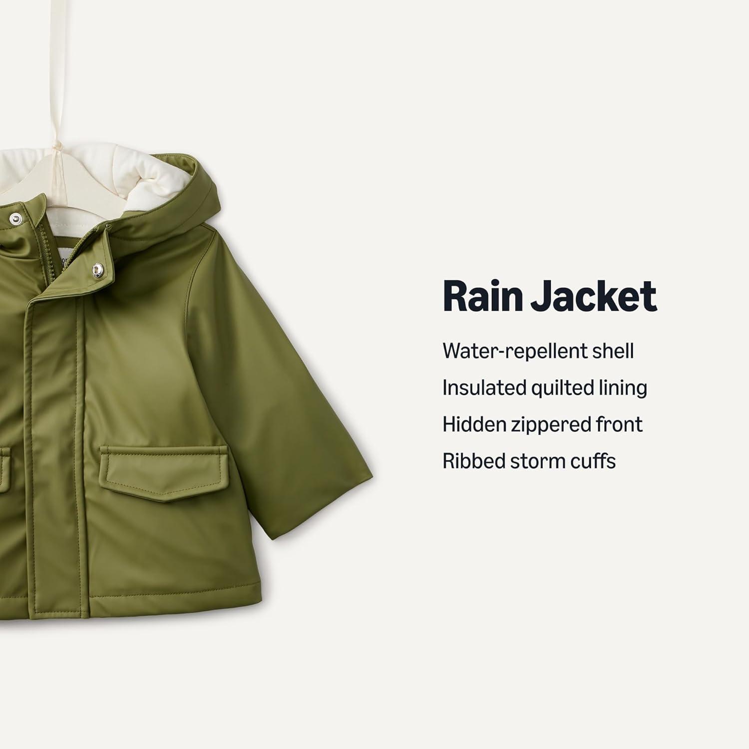 Amazon Essentials x Sofia Grainge Toddlers and Baby Boys’ Water-Repellent Rain Jacket(Olive)