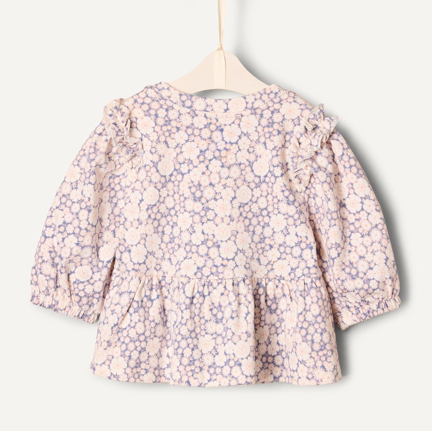 Amazon Essentials x Sofia Grainge Toddlers and Baby Girls’ 3/4 Sleeve Knit Top, Pack of 2(Delicate Floral/Round Trees)