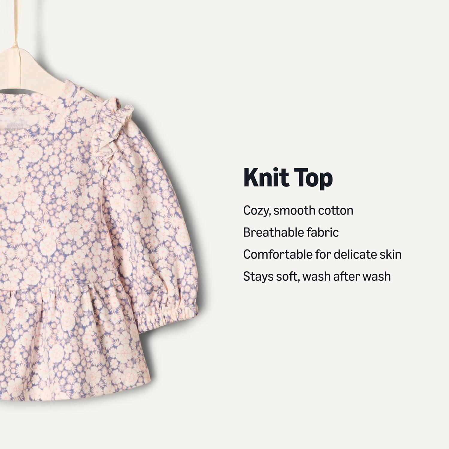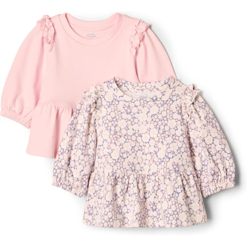 Amazon Essentials x Sofia Grainge Toddlers and Baby Girls’ 3/4 Sleeve Knit Top, Pack of 2(Delicate Floral/Pink)