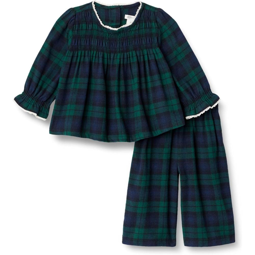 Amazon Essentials x Sofia Grainge Toddlers and Baby Girls’ Long Sleeve Flannel Set(Dark Emerald Green Deep Blue Plaid)