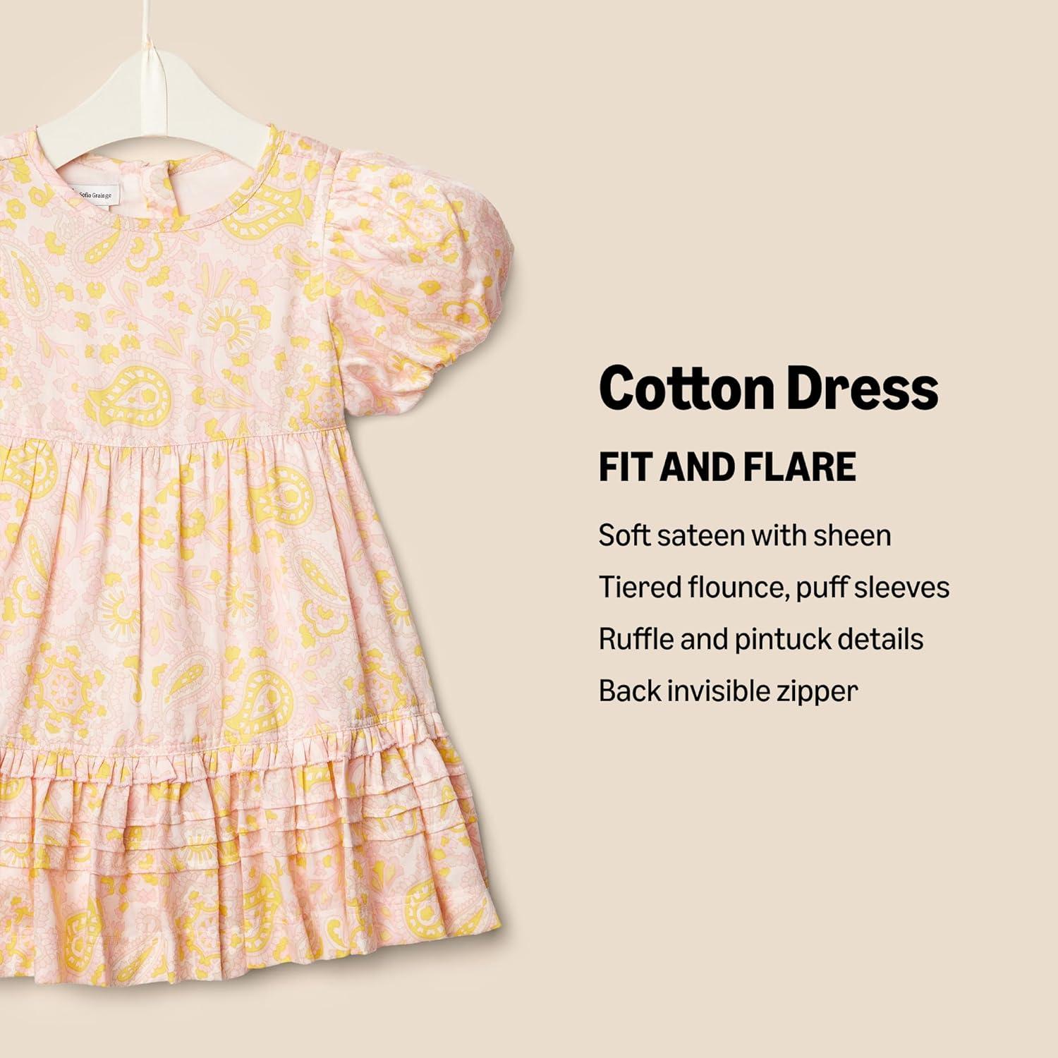Amazon Essentials x Sofia Grainge Toddlers and Baby Girls’ Puff Sleeve Dress(Shell Pink Ornate Paisley)