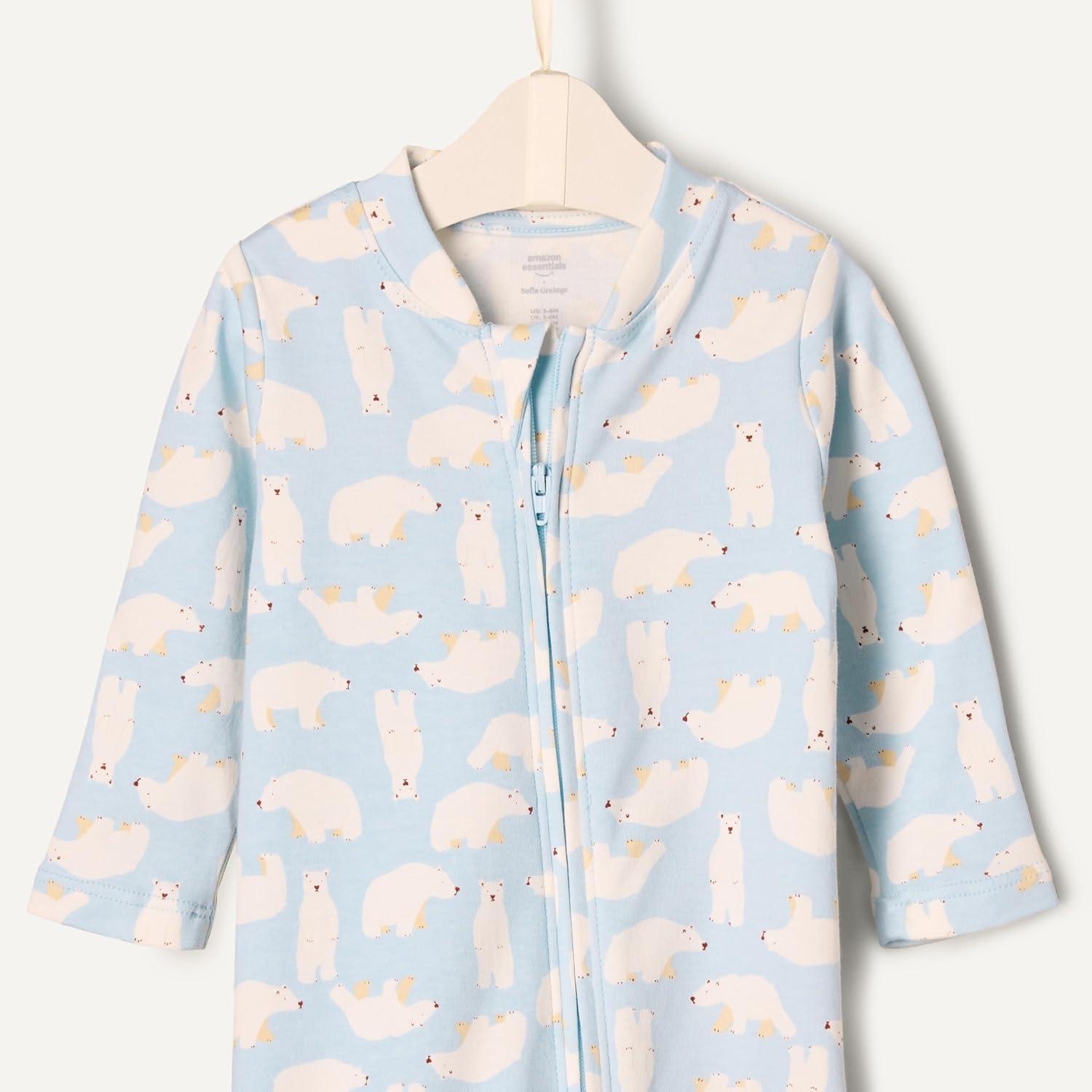 Amazon Essentials x Sofia Grainge Unisex Babies’ Cotton Footed Sleep and Play Bodysuit, Pack of 2(Blue Bunny Bear)