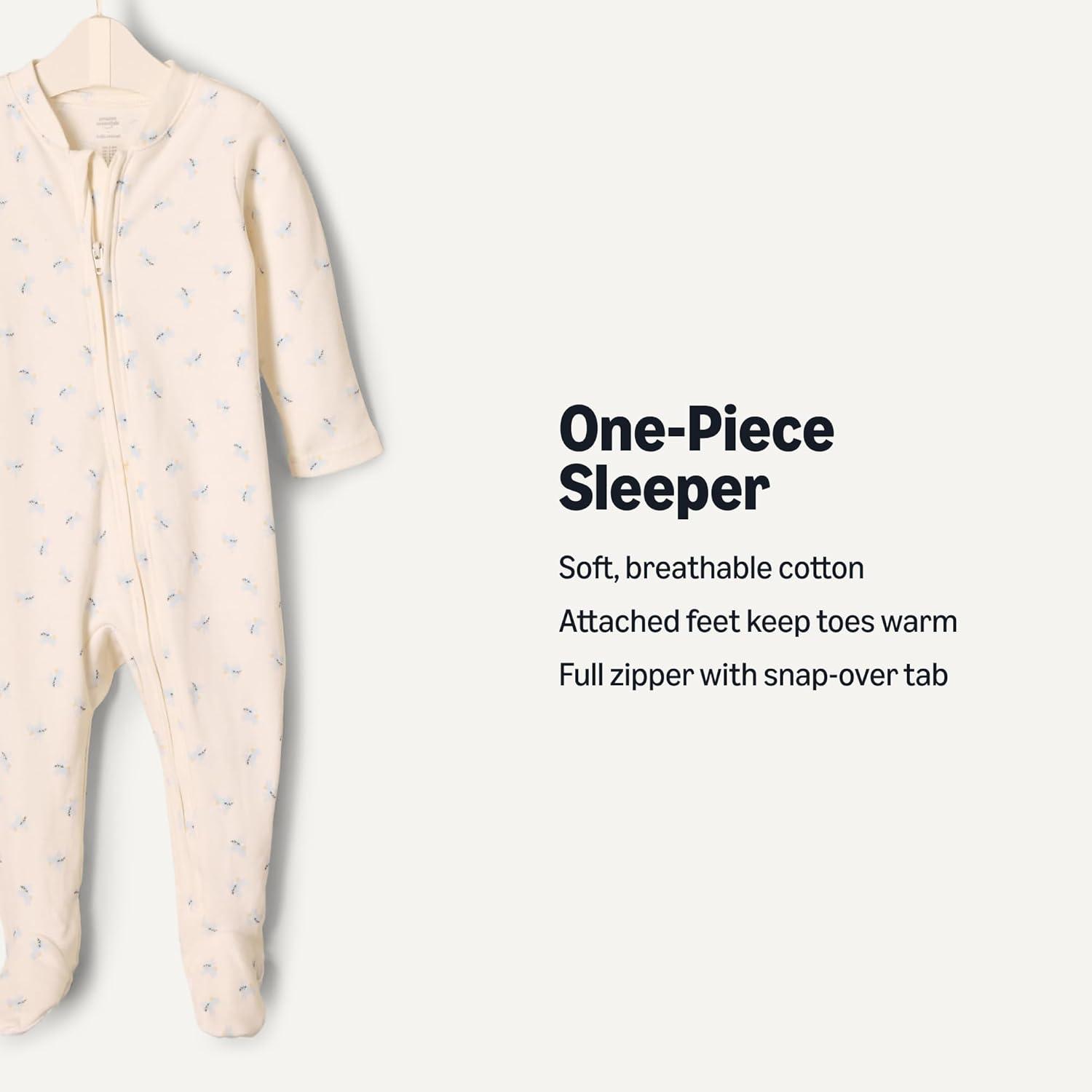 Amazon Essentials x Sofia Grainge Unisex Babies’ Cotton Footed Sleep and Play Bodysuit, Pack of 2(Ivory/Geese)