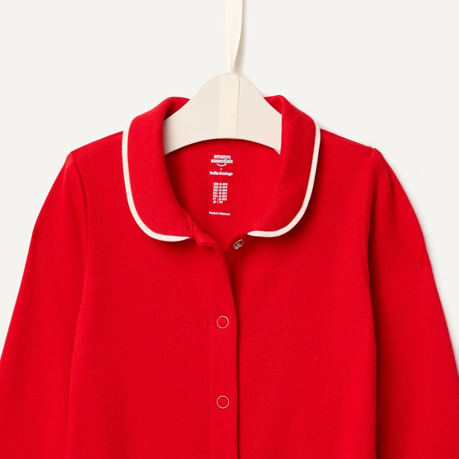 Amazon Essentials x Sofia Grainge Unisex Babies’ Footless Sleepsuit, Pack of 2(Red/Holiday)