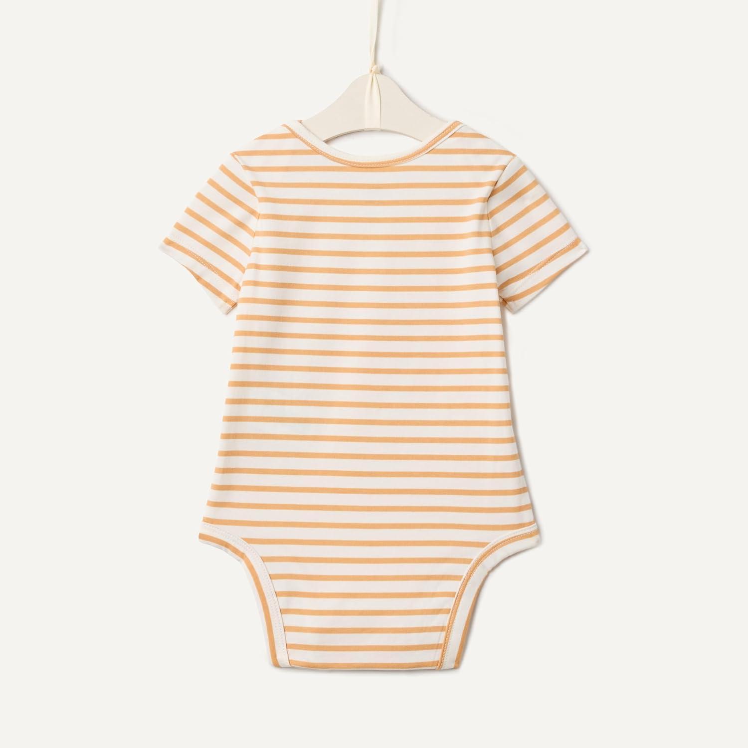Amazon Essentials x Sofia Grainge Unisex Babies' Short Sleeve Crewneck Bodysuit, Pack of 3(Ivory/Light Camel/Stripe)