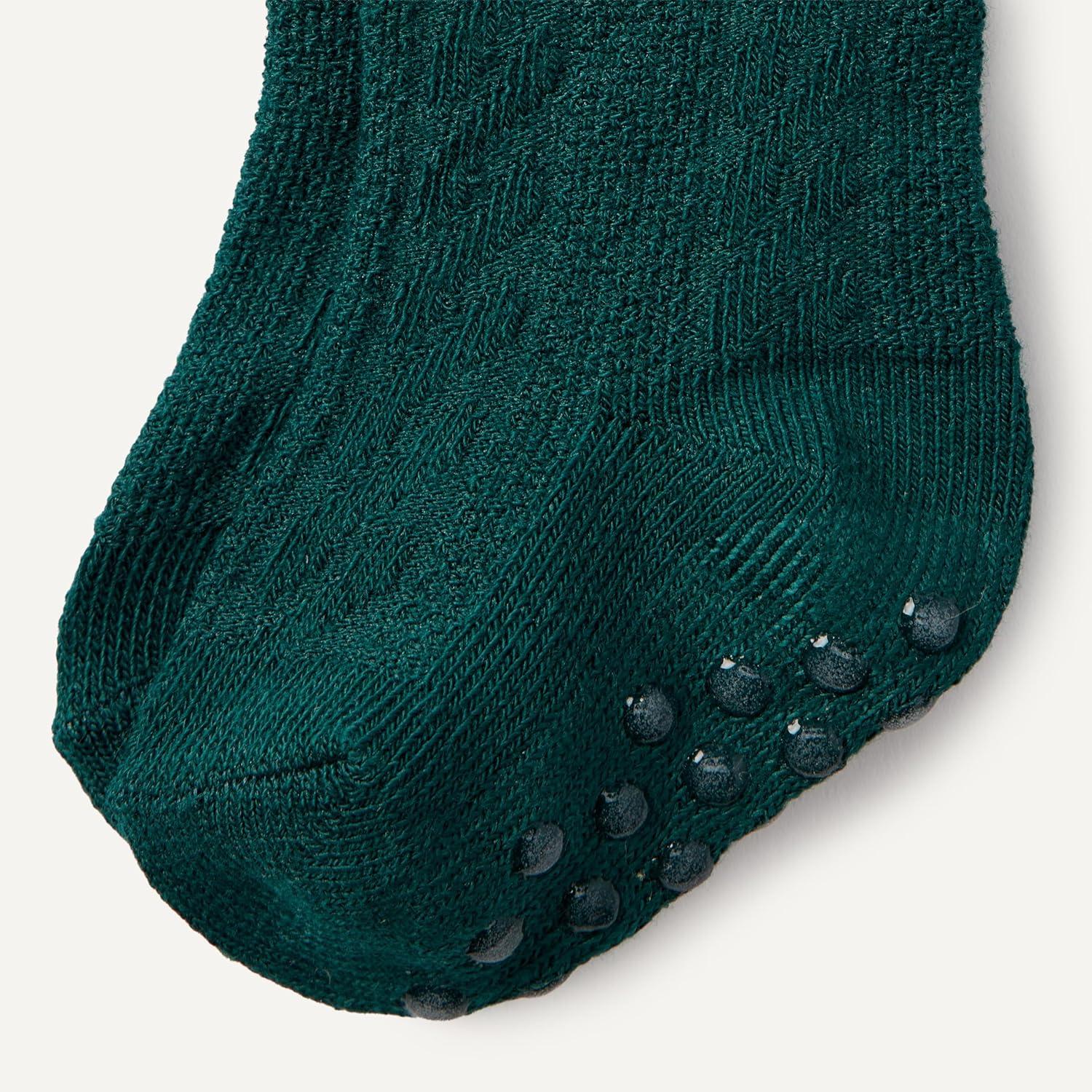 Amazon Essentials x Sofia Grainge Unisex Toddlers and Babies’ Cable Knit Knee-High Socks, 6 Pairs(Dark Green/Ivory/Red)