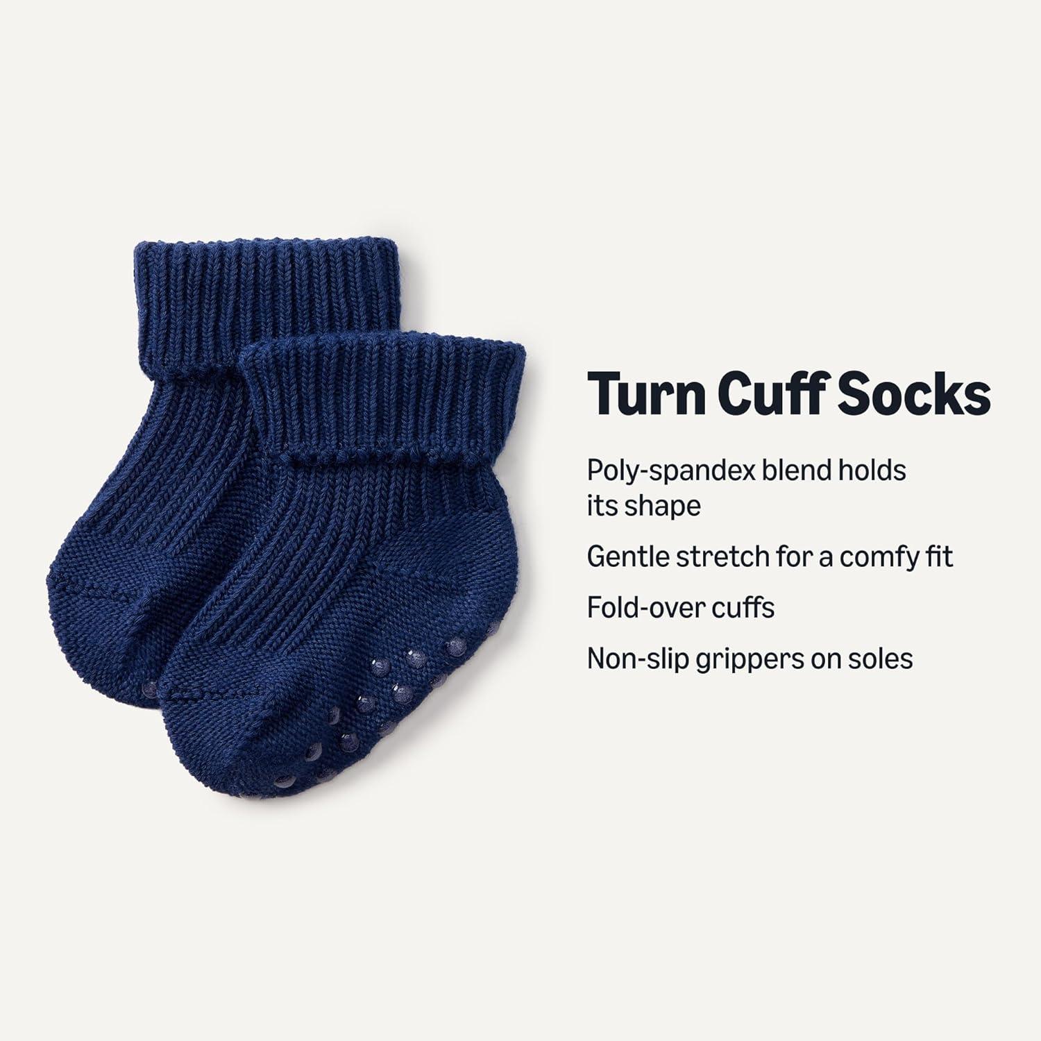 Amazon Essentials x Sofia Grainge Unisex Toddlers and Babies' Knitted Turn Cuff Socks, 6 Pairs(Heather Grey/Light Blue/Navy)