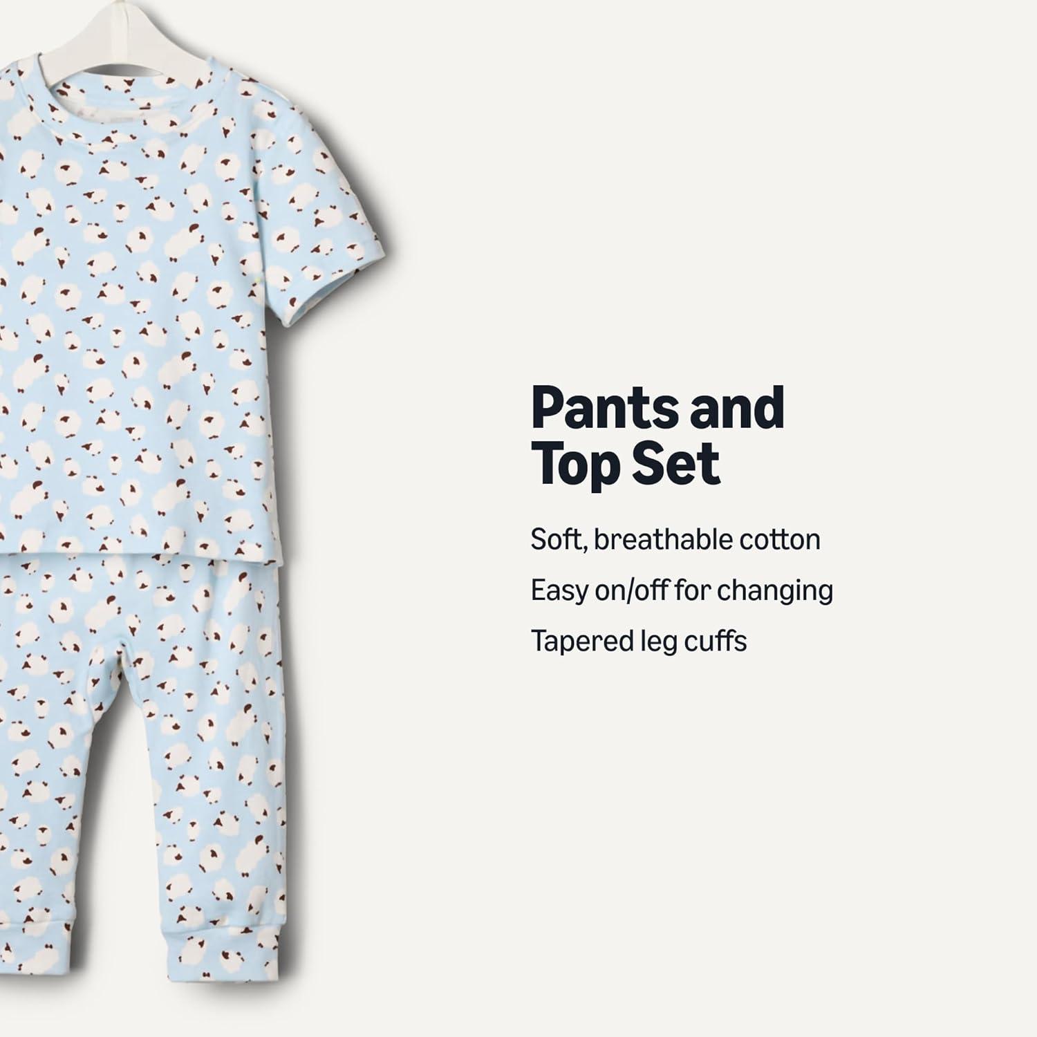 Amazon Essentials x Sofia Grainge Unisex Toddlers and Babies’ Pant & Top Set(Light Blue Lambs)