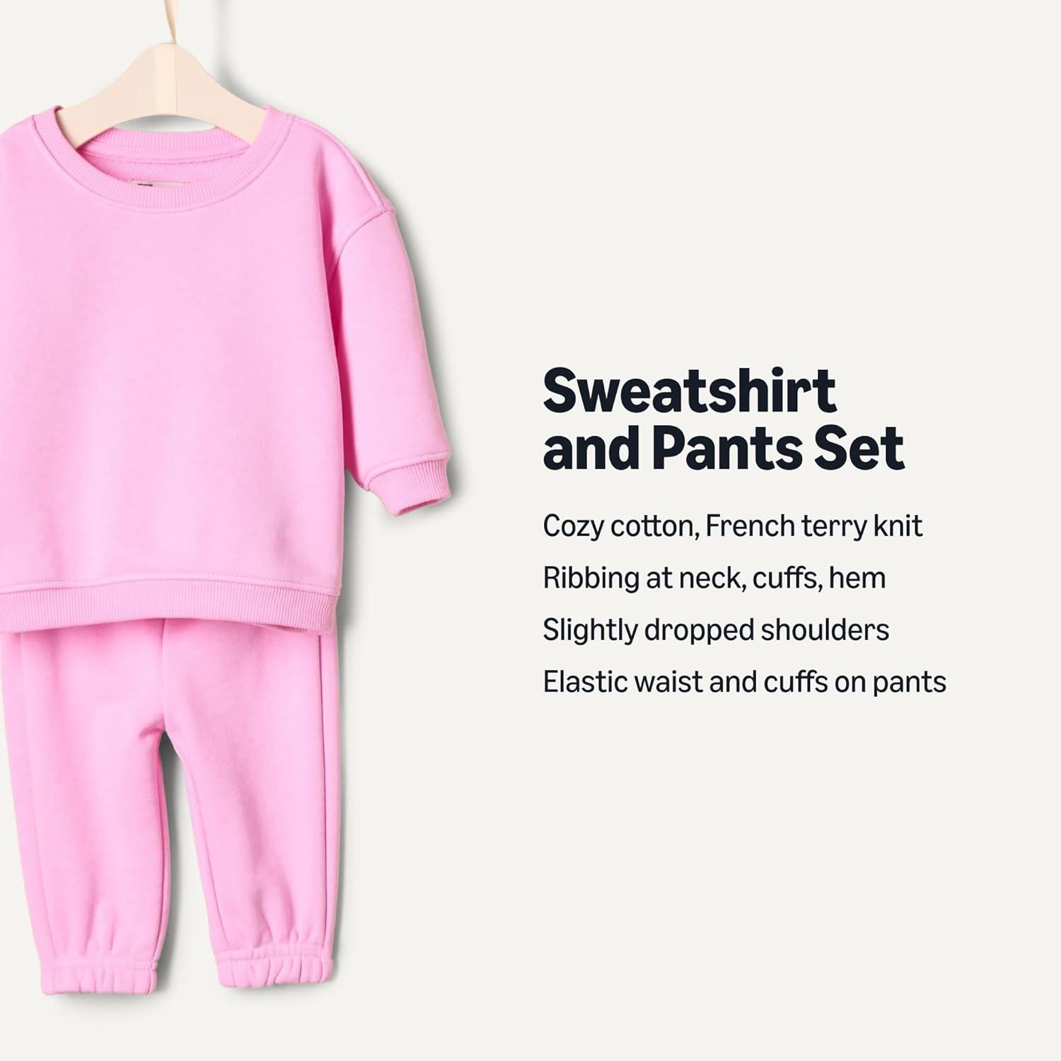 Amazon Essentials x Sofia Grainge Unisex Toddlers and Babies’ Sweatshirt & Sweatpant Set(Pink)
