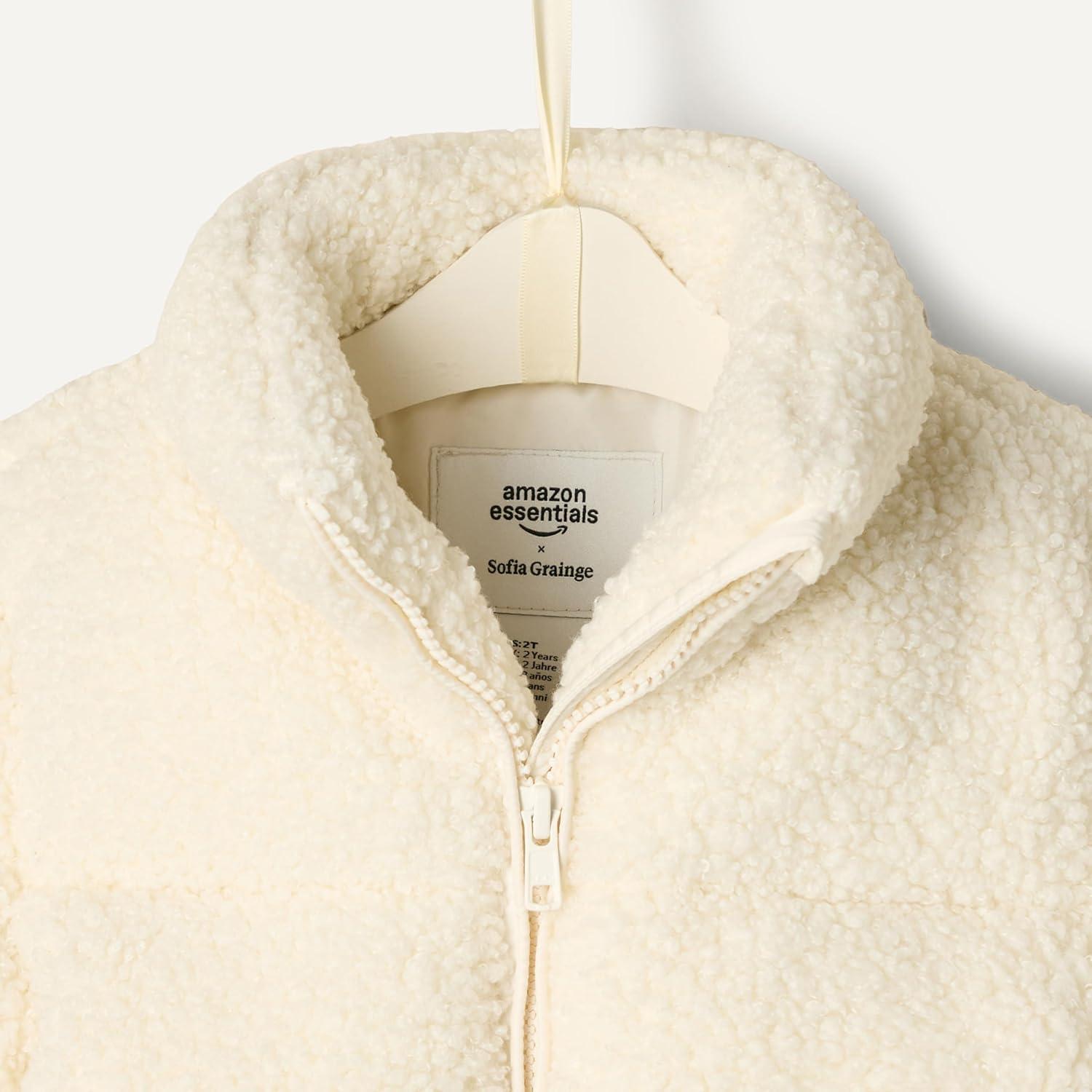 Amazon Essentials x Sofia Grainge Unisex Toddlers and Babies’ Teddy Puffer Jacket(Ivory)